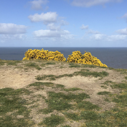 A Mothers day walk, Cromer to Overstrand, Norfolk. A cool, still, sunny afternoon. The sumptuous aroma of gorse accompanied the cliff top walk as small clouds cast sinister giant squid like shadows on the sea. Noticing the light in the roof of Norwich train station.