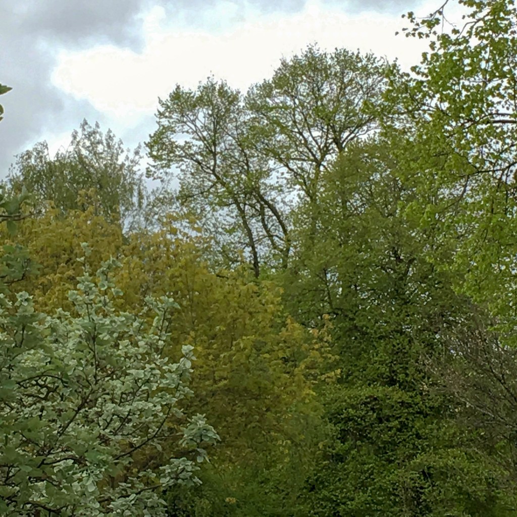 A warm and muffled morning, quiet routines gently unfolding around me. Sounds of building work and cleaning activities. Trees semi-cloaked, poised ready for full glory. Noticing the variety of greens, shadows and a self-reflection with a broom (felt fitting!!) Held, by the ordinariness of the day.