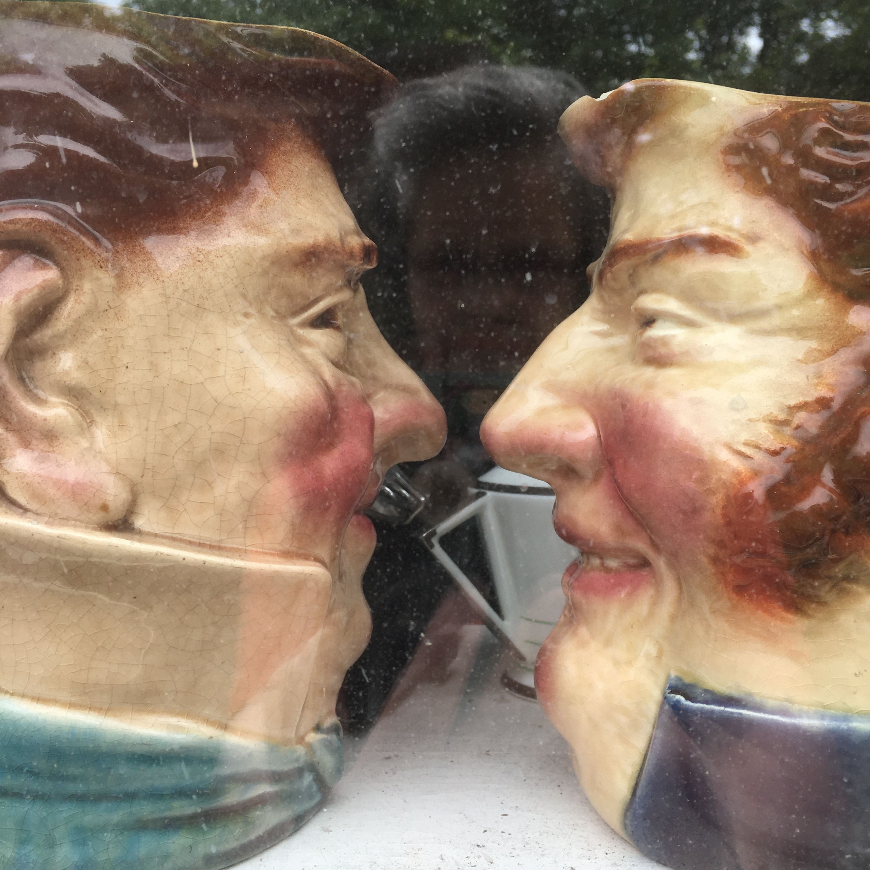 Today: a favourite moment enjoying the shadows of the laundry room out pipes at The Cedars: a return to Arundel Court, a parcel to deliver, I enjoy the colours and distortions thro the glass doors: as I leave Arundel court I catch a new moment between two toby jugs sat on a window cill.
