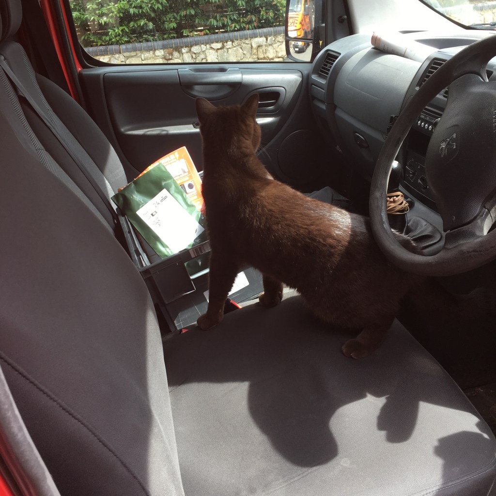 Thursday, bin lorry day, thankfully few encounters today with the bin lorries . A day with cats in, a beautiful brown cat invited itself into our van to have a thorough sniff and explore. Super lovely until it decided to disappear under the van and we spent five minutes trying to get it to move. There was a fabulously grumpy looking cat staring at me from one of the last calls of the day. Sadly the photo doesn’t quite capture the intensity of it’s stare.