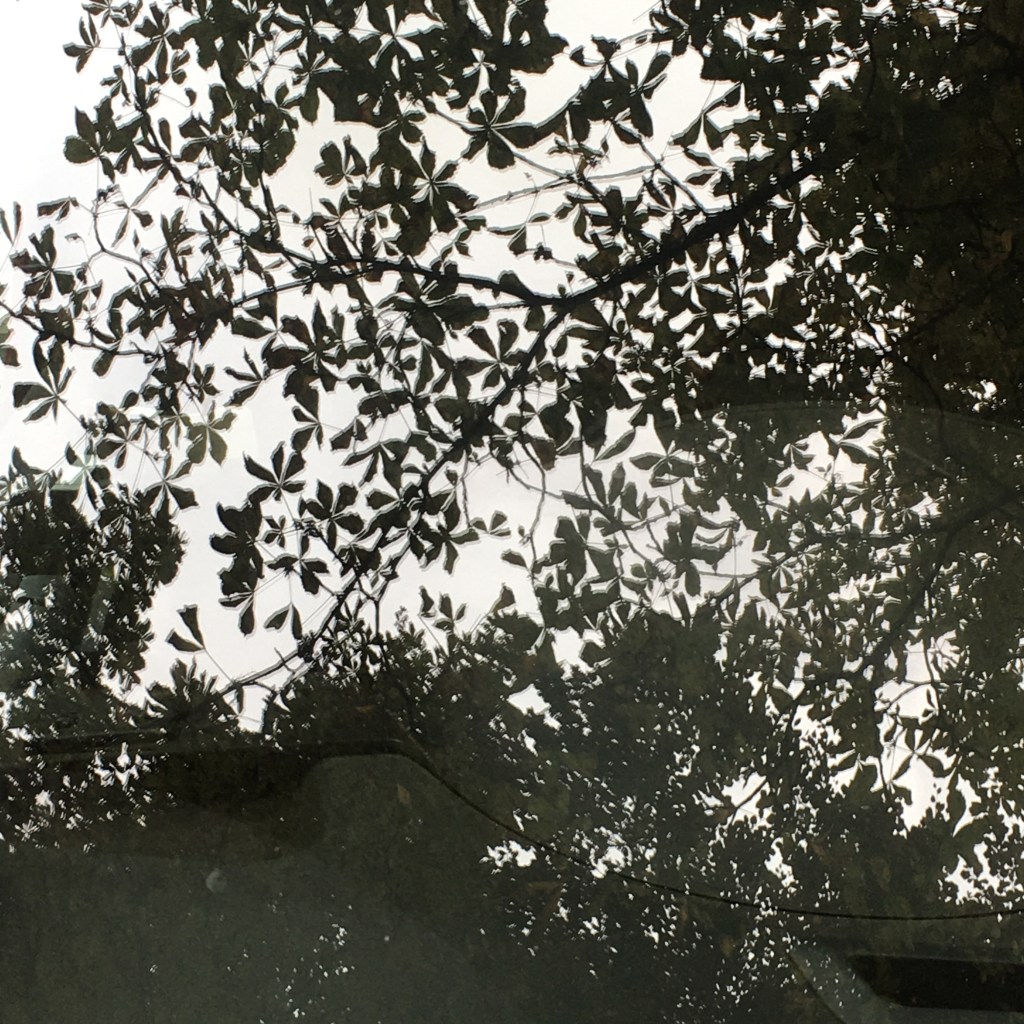 Today: My eyes are caught by colours and patterns: Leaf reflections in van: Yellow wall and roses, Mount Pleasant: Giant fresh green: Licorice allsort like flowers, Ipswich grove: Pink ivy, Ipswich Road dentist.