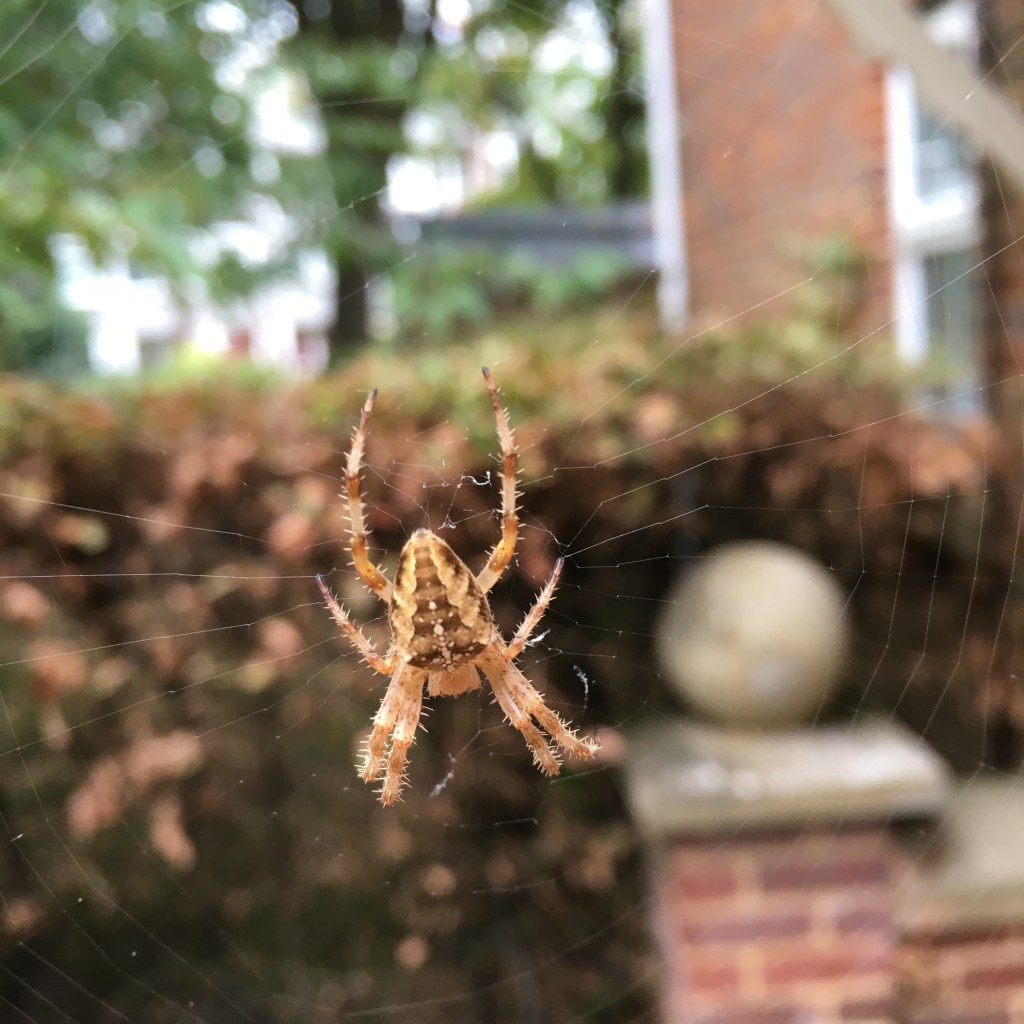 Today: Dainty camouflaged mushrooms catch my eye at 24 Newmarket Road: Spider is defiantly back across the pathway at 30 Kenneth Mckee Plain
