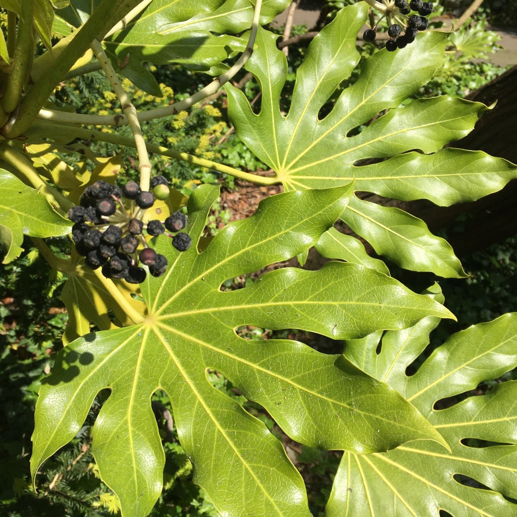 Today: I now see these amazing bushes all over the walk, this large one in Ampthill Street looked particularly sublime in the early morning sun: Foliage patterns: Shadows in Eagle Walk.