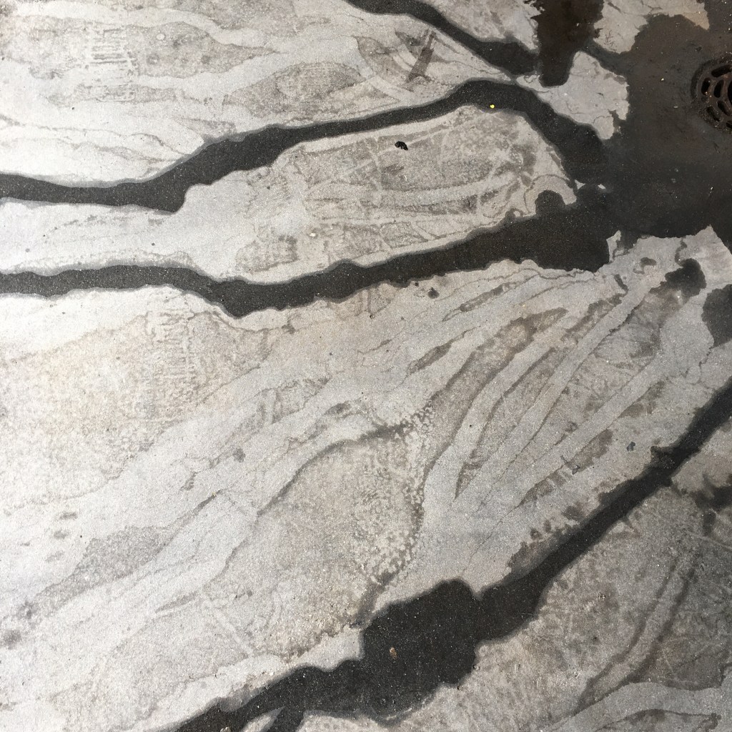 The rain had left beautiful puddles on Suffolk Square walkways, which I have used in today collage.