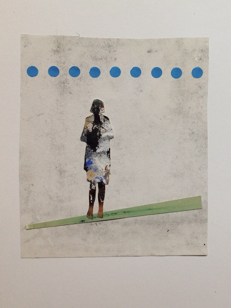 In Vivian Maier: Exteriority, Collage I placed the figure of Vivian Maier into the background of Edward Hopper’s “Nighthawks” as I contemplated the ways we attempt to understand Vivian Maier’s work through existing cultural narratives. This led onto a series of small collages “Contemplation 1-5” of isolated figures.