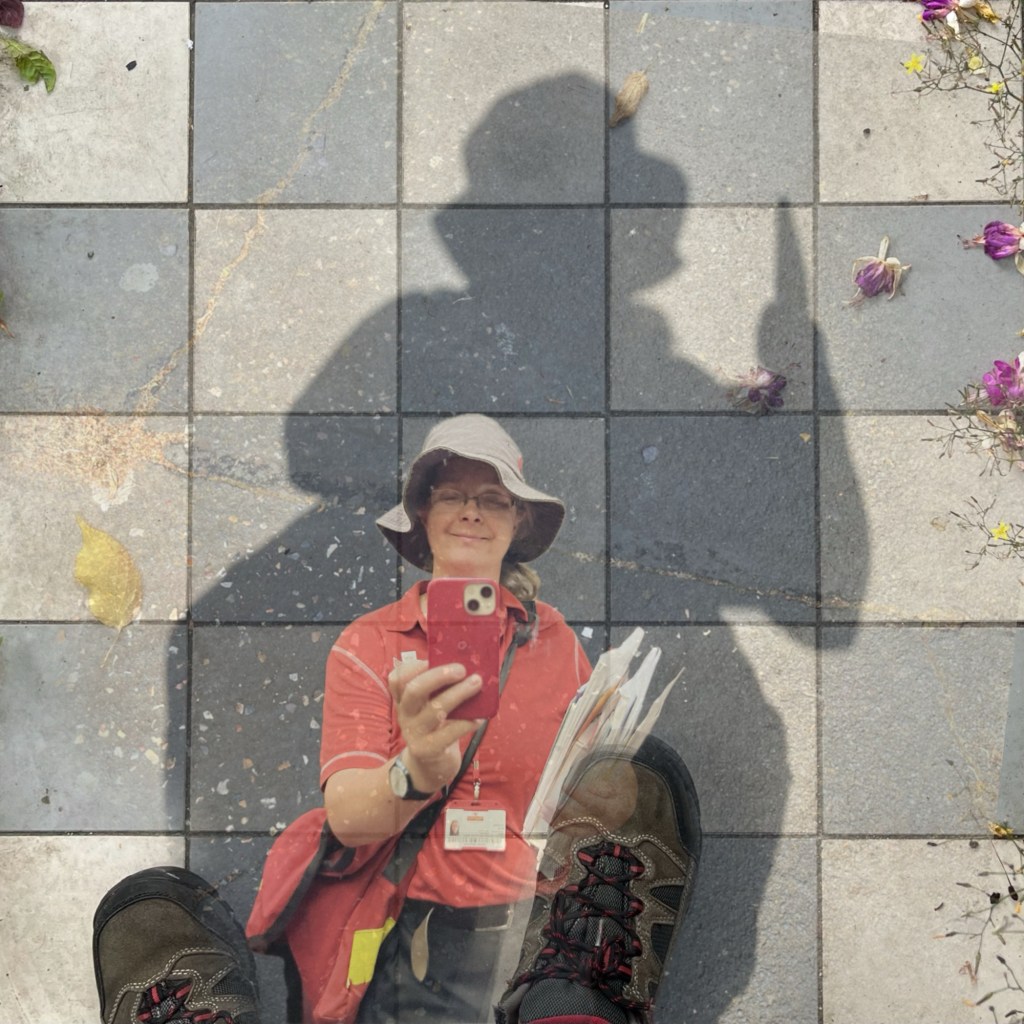 Quite a day, stifling hot from the start. My colleague becomes unwell and I take them back to the delivery office. I return to delivery to try to get finished what I can, but it is hard hot work.